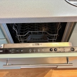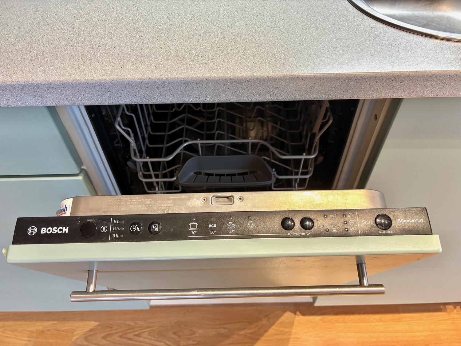 Kuch. linka s vestavěnou myčkou nádobí, kombinovanou lednicí s mrazákem, el. trouba, sklokeramicka varná deska.