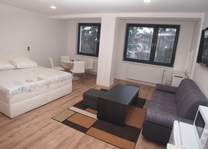 Pronájem kompletně zařízeného bytu 1+kk v jedné z nejžádanějších částí Brna - Masarykova čtvrť. Menší apartmánový dům, pouze s 5-ti byty, nabízí klidné bydlení ve vilové části města. Apartmán 30m2 je vybaven kuchyňkou se sklokeramickou varnou deskou, lednicí, mikrovlnnou troubou, rychlovarnou konvicí, základním nádobím, TV, dvoulůžkem, rozkládací sedačkou s možností dalšího přespání, šatní skříní, vlastní koupelnou se sprchovým koutem a WC. V přízemí domu je k dispozici společná prádelna s pračkou a sušičkou, k dispozici vysavač. Stačí přijít jen s osobním zavazadlem, vše potřebné zde najdete. Připojení k internetu a O2 TV za poplatek 250 Kč/měs. Možnost parkovacího místa pod okny, na pozemku domu 1000 Kč/měs. Vratná kauce 1 nájem. Možnost i krátkodobého pronájmu ! Volný od 1.4. Přímo do centra města se dostanete za pár minut autem i MHD. Trolejbusová zastávka 100m od domu. Díky tunelu v Pisárkách jste za pár minut i na výjezdu D1. Prohlídka možná po dohodě na tel. 605 931 999 nebo na e-mailu holub@bravoreality.cz
