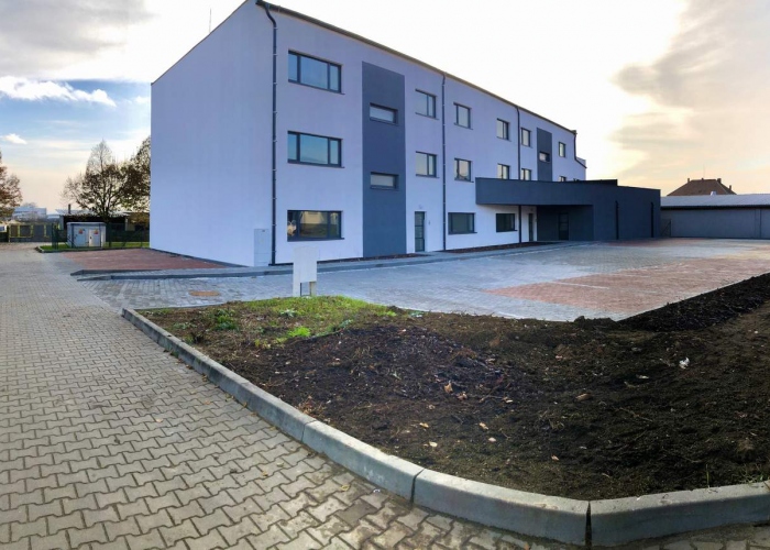 Pronájem nezařízeného bytu 1+kk s parkovacím stáním, Židlochovice,ul. Sportovní. Nízkoenergetický byt ve 3p/3 bytového domu (z r. 2020) s 18-ti bytovými jednotkami.