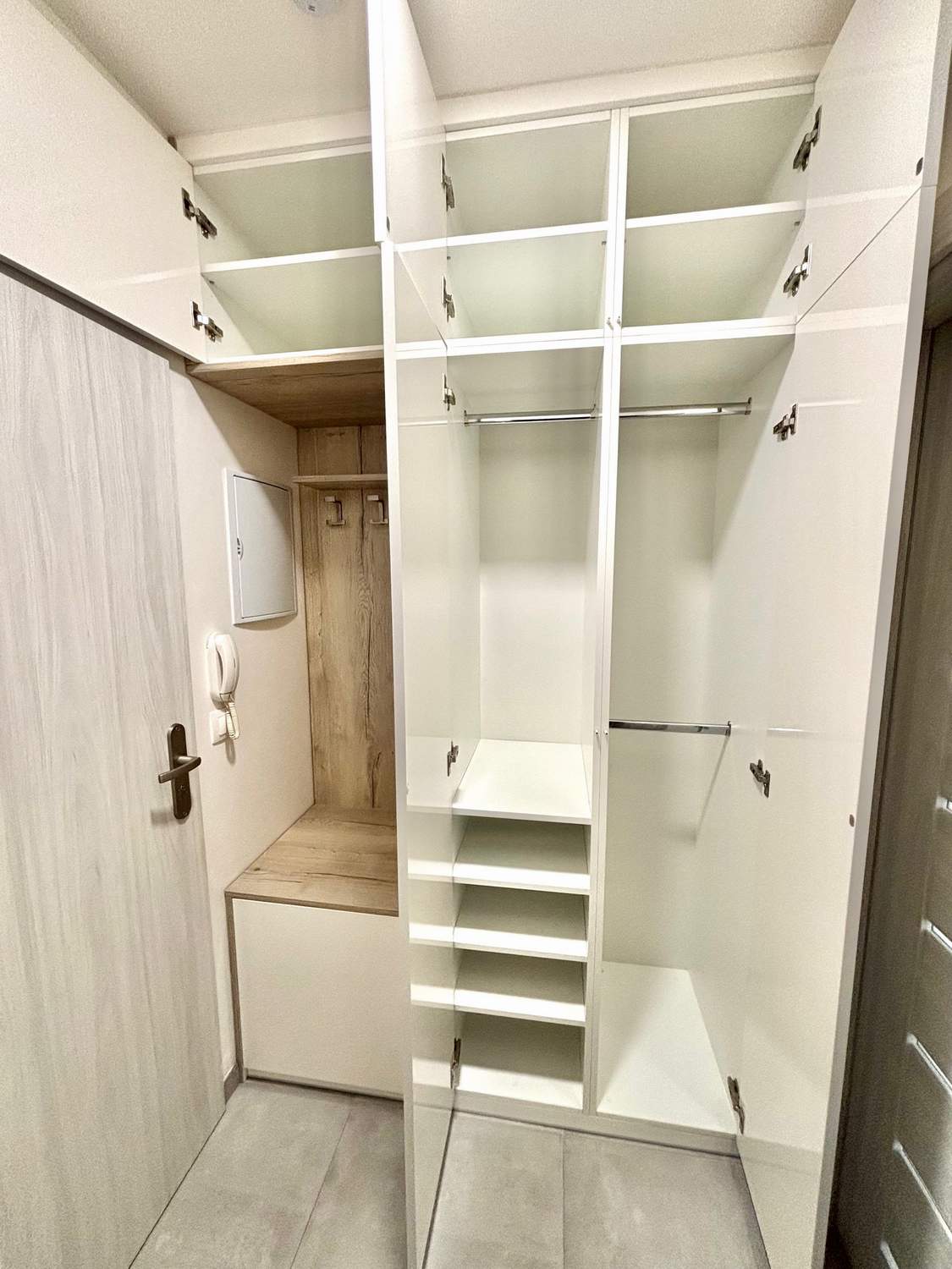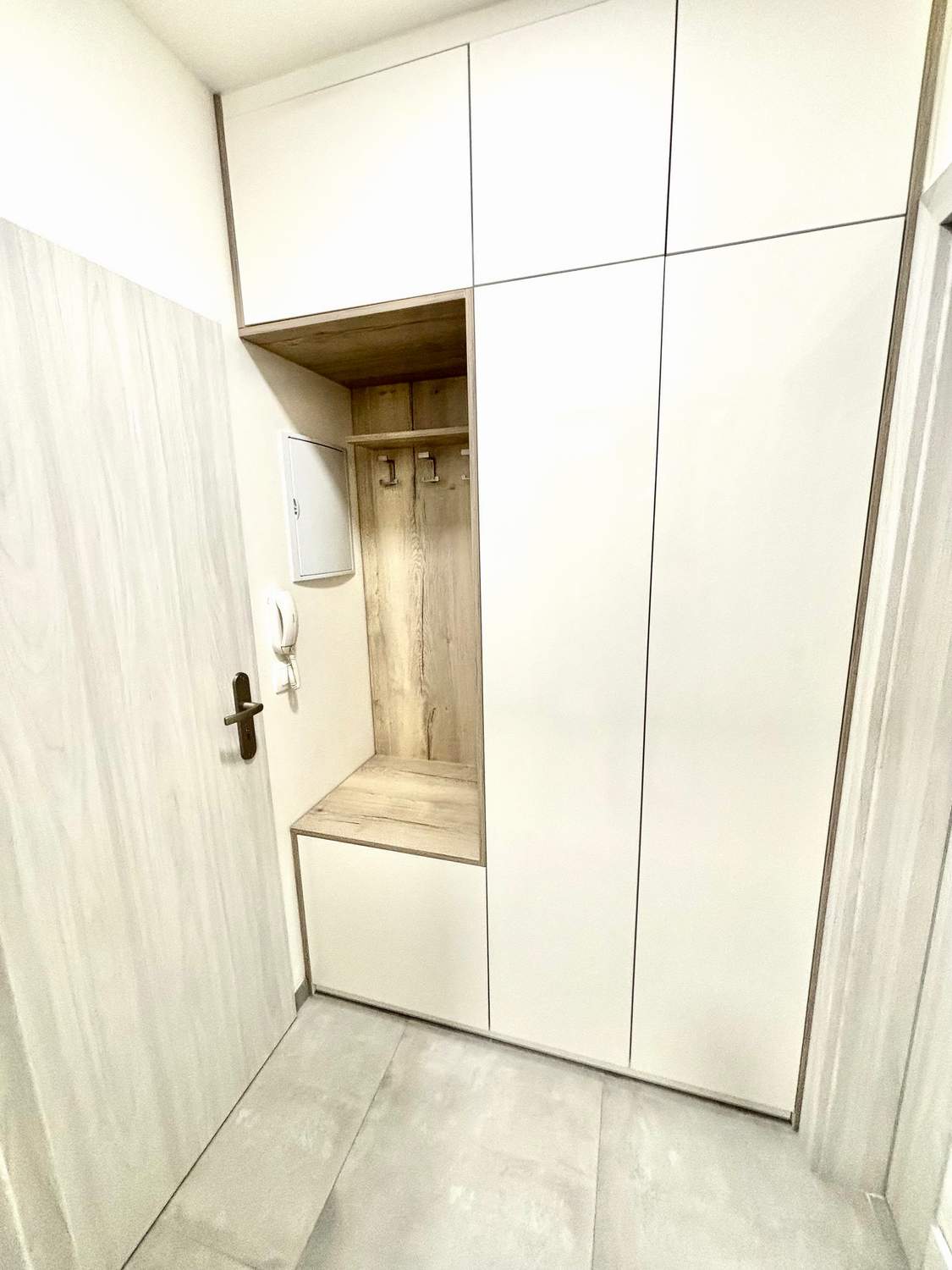 Kuch. linka vybavená myčkou nádobí, el. troubou, sklokeramickou varnou deskou. V předsíní vestavěná šatní skříň.