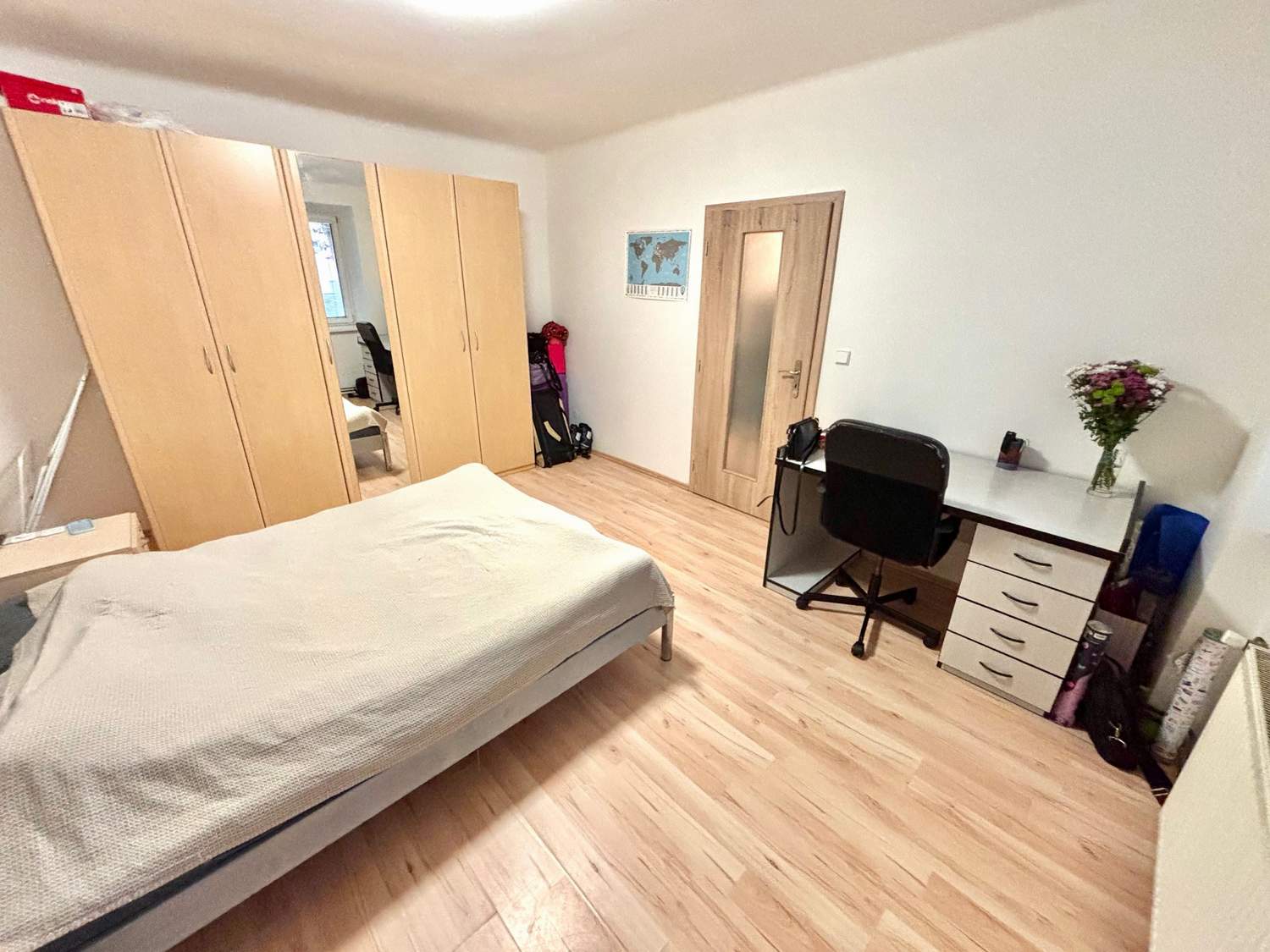 K dispozici kombinovaná lednice s mrazákem, v koupelně pračka. Stávající nájemníci nabízí možnost ponechání sušičky, sedačky a šatní skříně v ložnici. Ostatní vybavení na fotografiích je součástí bytu.