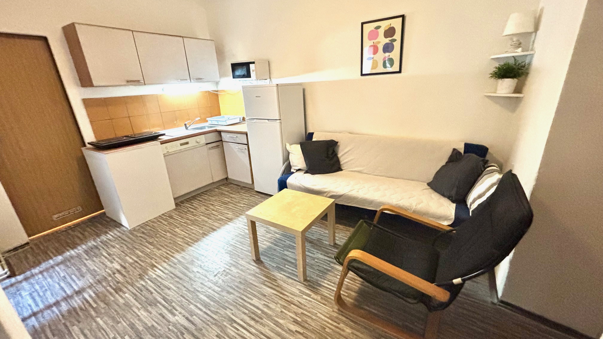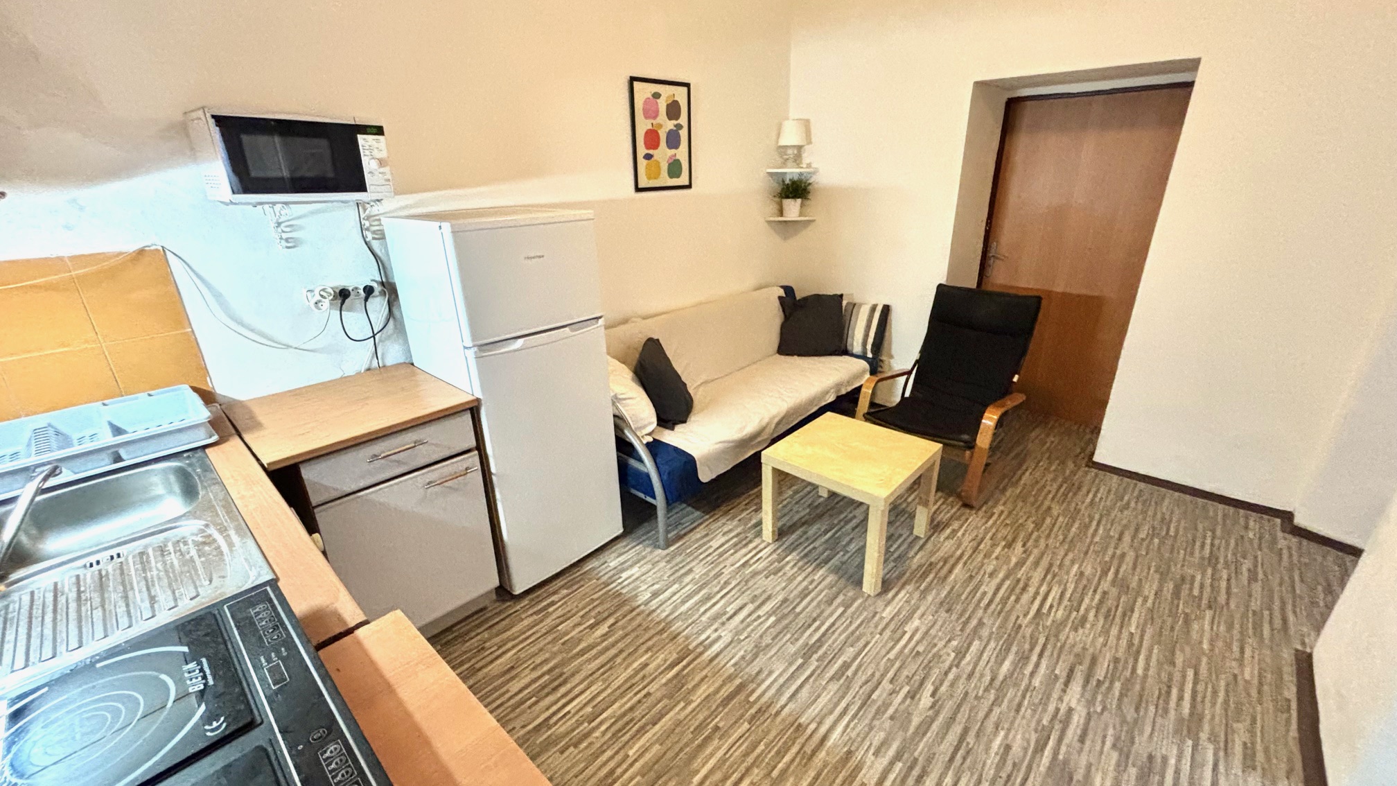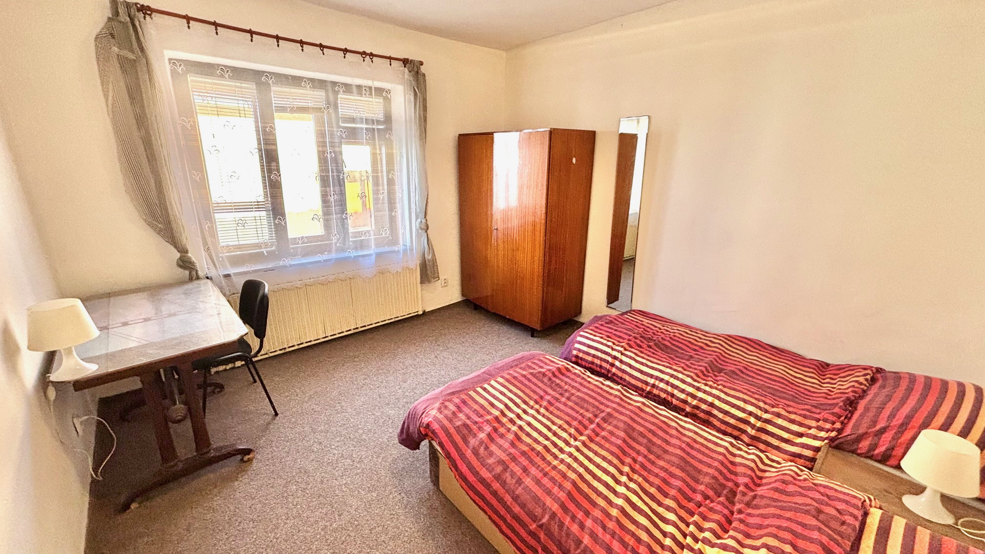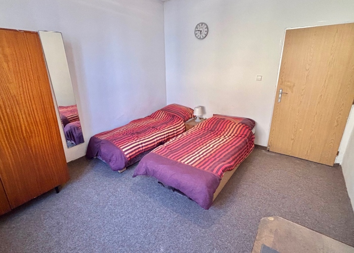 Byt se nabízí zařízený. Všechny tři pokoje jsou vybaveny dvěma lůžky (lze oddělit), byt je tak vhodný především pro firemní zaměstnance nebo studenty.