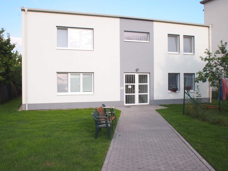 Na dvoře možnost posezení, sušení prádla, uzamykatelný přístřešek pro kola.