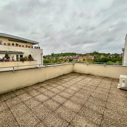 K pronájmu nabízím zařízený byt 2+kk s terasou 31m2 a balkonem 5m2, Brno - Medlánky na ul. V újezdech, ve 4p/5 s výtahem.