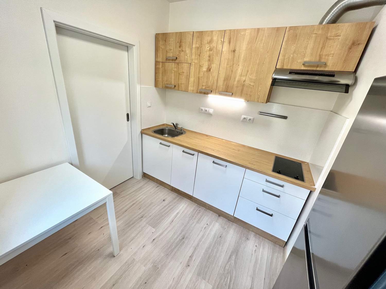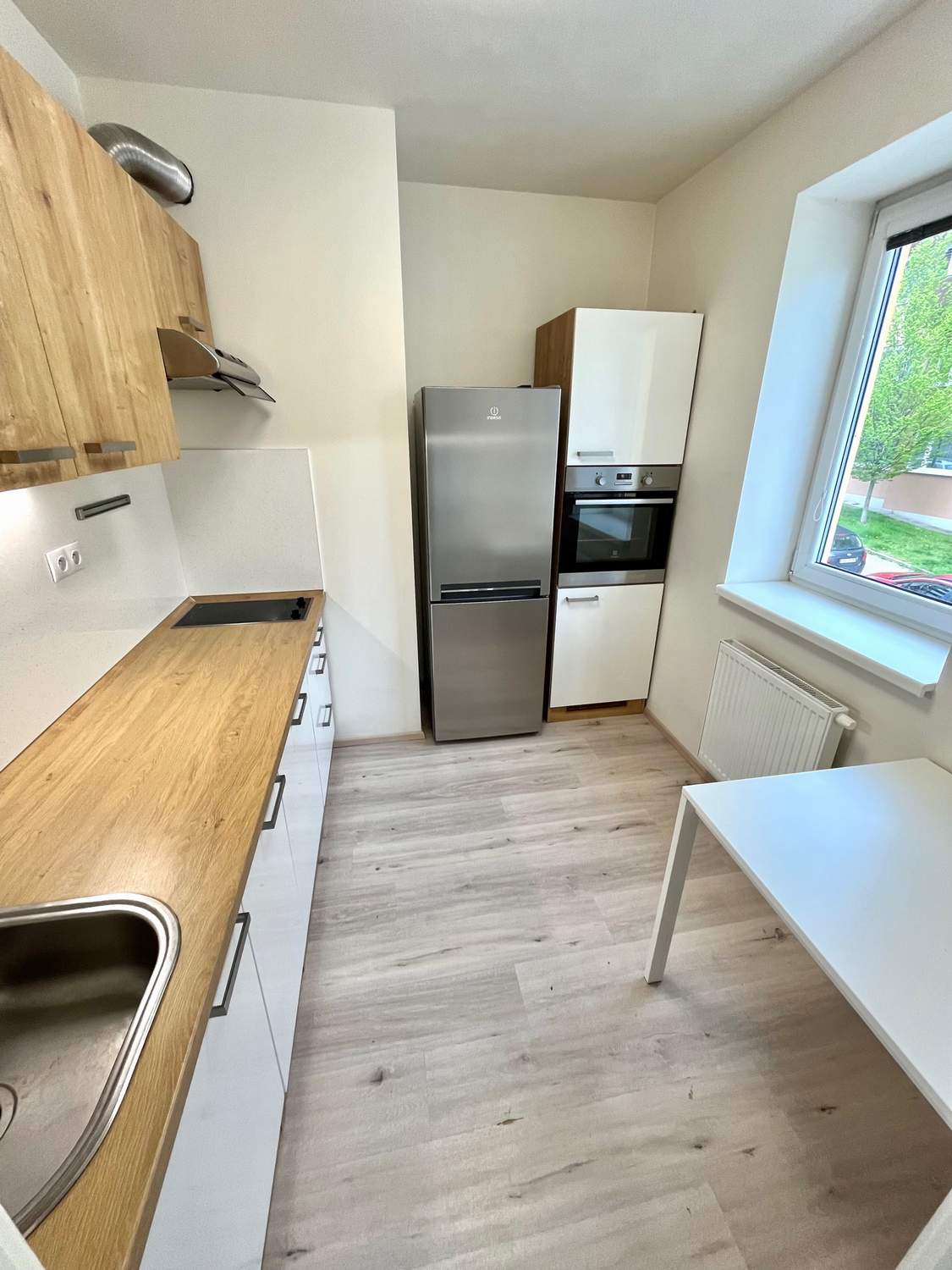 Kuchyně je vybavena linkou se spotřebiči - velká kombinovaná lednice s mrazákem, el. trouba, indukční varná deska, digestoř.