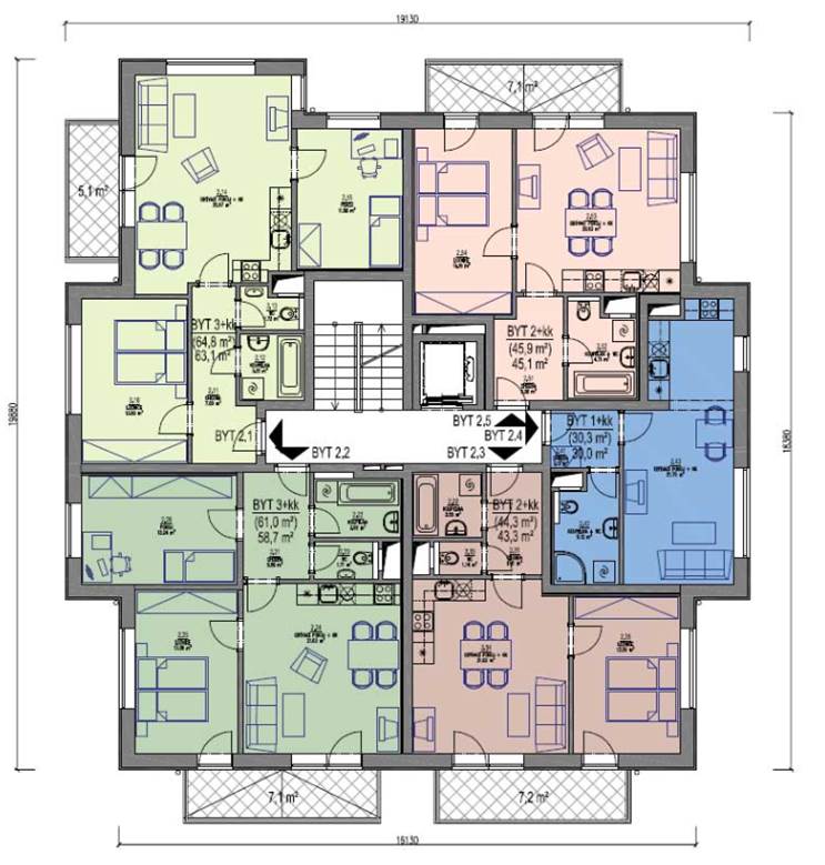 Byt ve 1.patře/5 s výtahem.