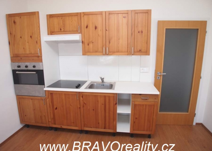 Kuch. linka se sklokeramickou varnou deskou, el. troubou, digestoř. V celém bytě podlahové topení, ohřev vody el. bojlerem. Nízký tarif (noční proud).