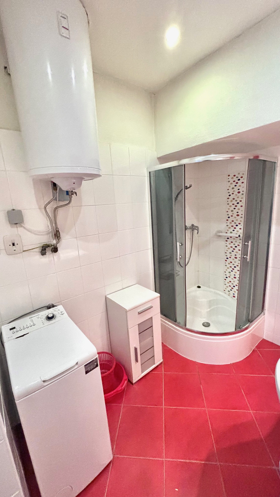 Vytápění zajišťuje plynové topidla WAF, ohřev vody el. bojlerem.