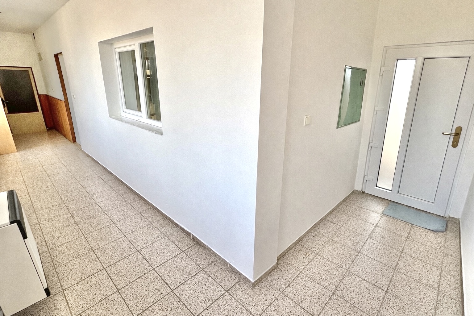 vstupní chodba / zasklená veranda 16m2 z výstupem na zahradu, předsíň 6m2, pokoje 16,2 + 13 + 10,2m2, kuchyně 9,7m2, koupelna 5,4, samostatné WC 1,1m2, komora 5,5m2.