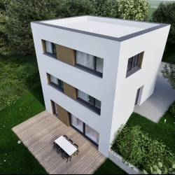 Předmětem této nabídky je prodej RD 5+kk s podlahovou plochou 154,2m2, se dvěma parkovacími místy před domem na pozemku, vyznačeném na situačním plánu červeně. Na zastavěné ploše 60m2 vznikne stavba o čtyřech podlažích.